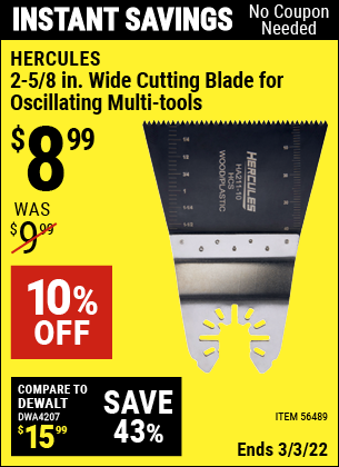 Buy the HERCULES 2-5/8 in. Wide Cutting Blade (Item 56489) for $8.99, valid through March 3, 2022.
