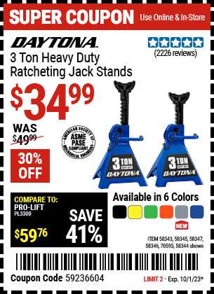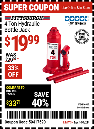 PITTSBURGH 12 Ton Hydraulic Bottle Jack for $24.99