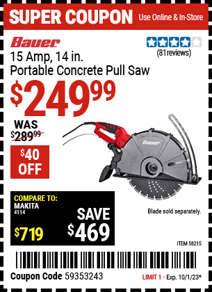 CHICAGO ELECTRIC POWER TOOLS 7 Amp 4 in. Handheld Dry-Cut Tile Saw for $29.99
