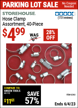 STOREHOUSE Hose Clamp Assortment – 40 Pc. – Item 62363 / 60807 / 63623 / 67578